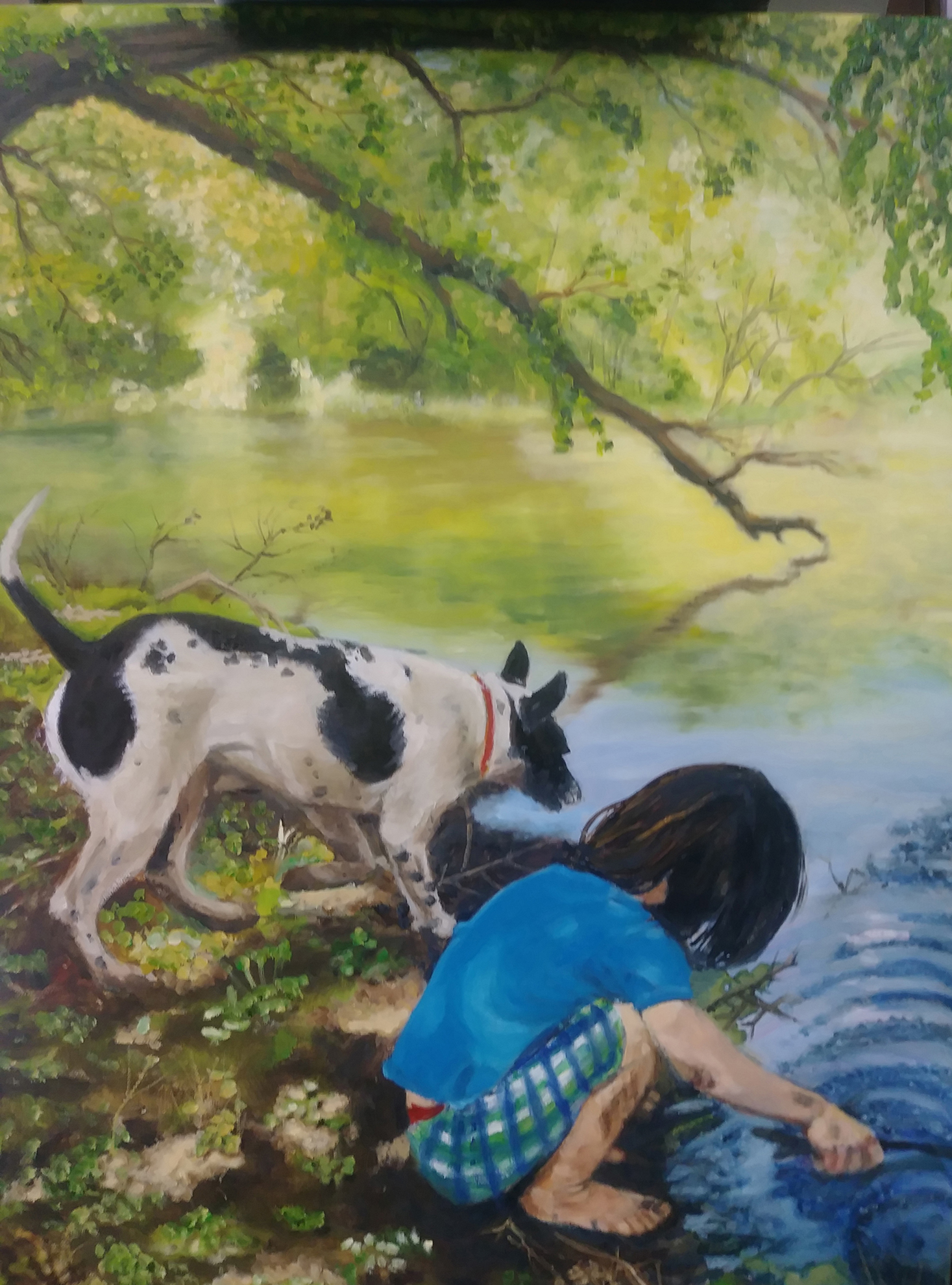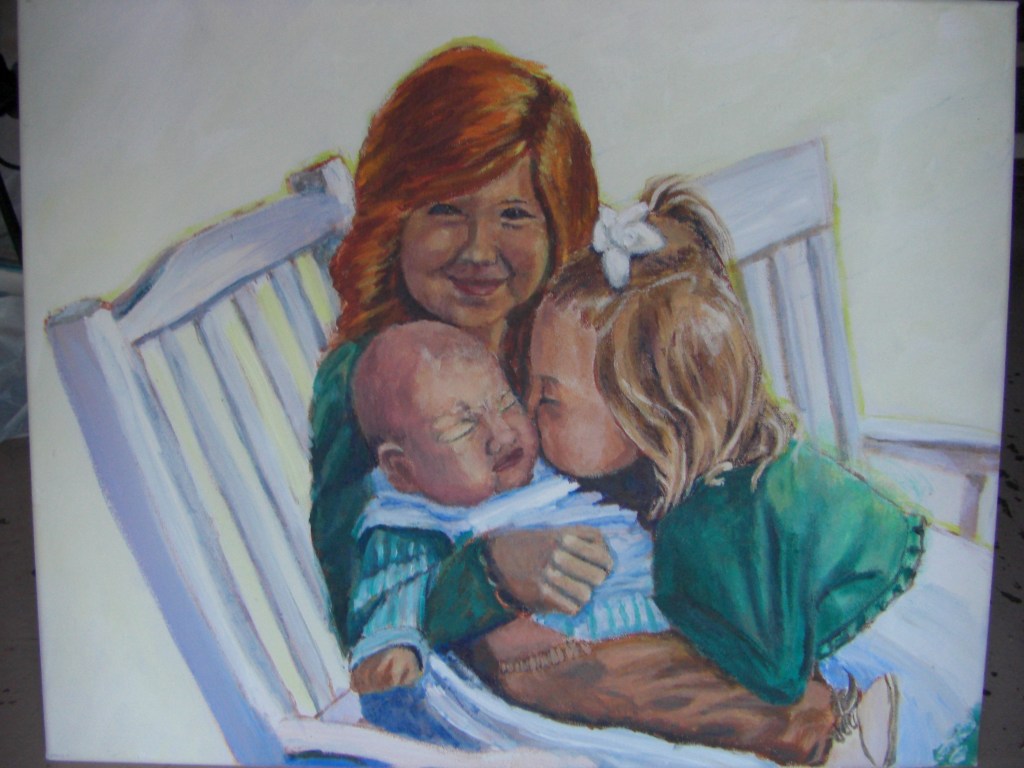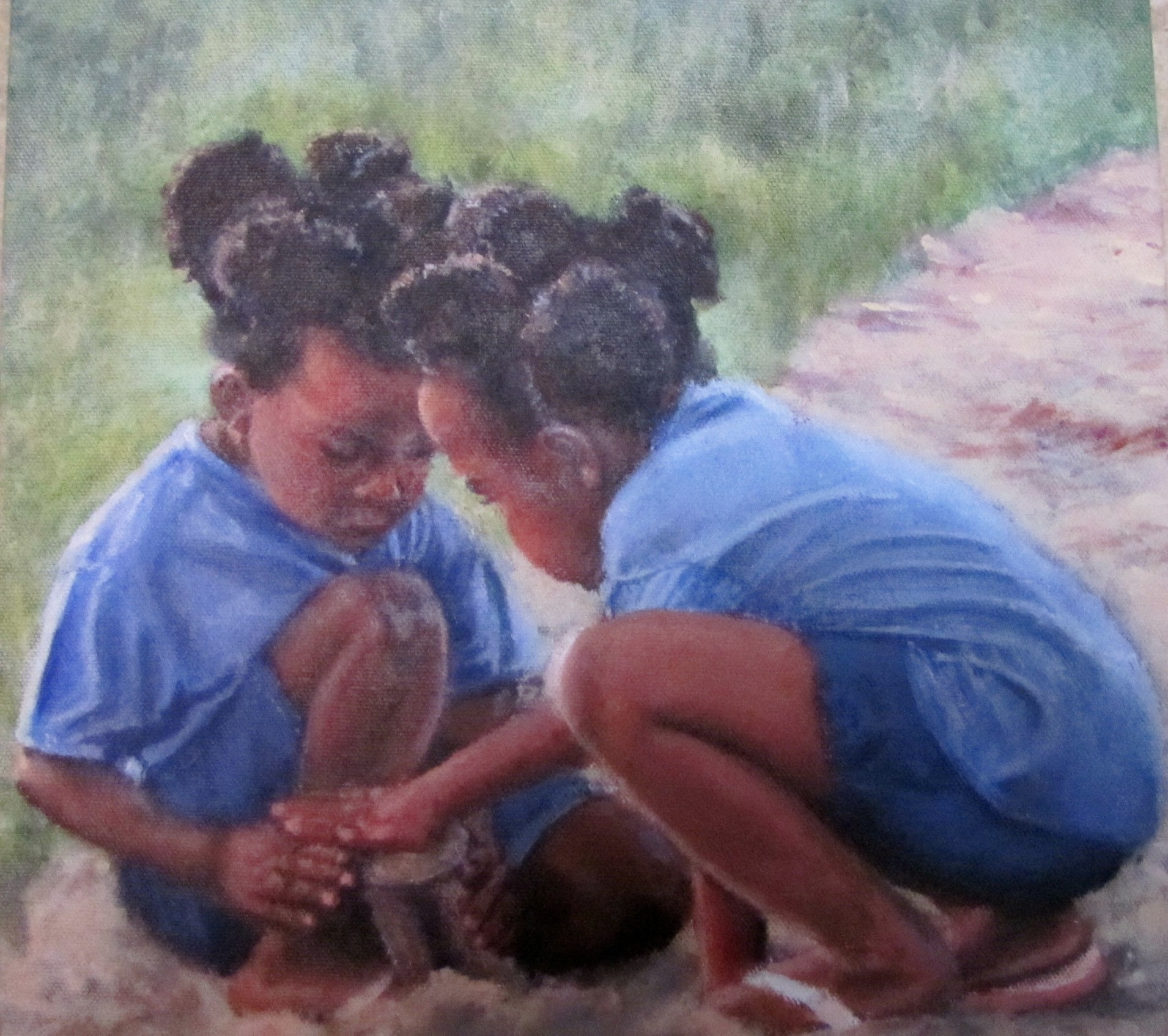 Sisterly Love Oil 16 x 20 Collection of Rick Mills. Prints available 8 x 10 matted $55.00, 11 x 14 matted $60.00 Party Crasher Acrylic 16 x 20 $300.00 Sand Play Acrylic 12 x 12 Collection LifeChurch South OKC, Prints available $60.00